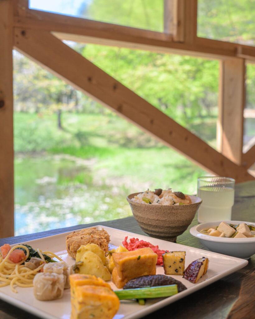 「新じゃがのふき味噌」「春キャベツと新玉ねぎのメンチ」<2025/4/16 とらっせバイキング メニュー例>