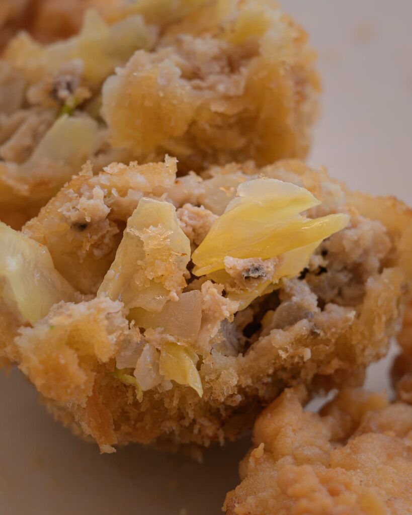 春野菜の甘みがぎゅっとつまった、揚げたてジューシーなメンチ。