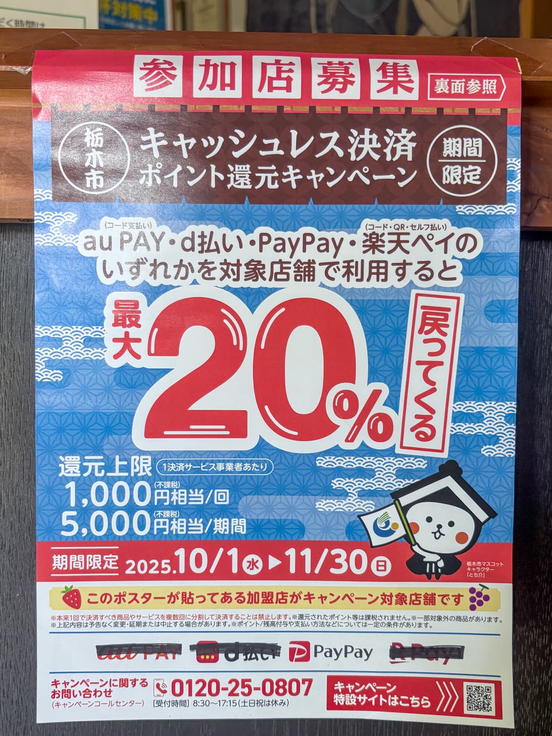 栃木市キャッシュレス決済 ポイント還元キャンペーン(2025 10/1〜11/30)