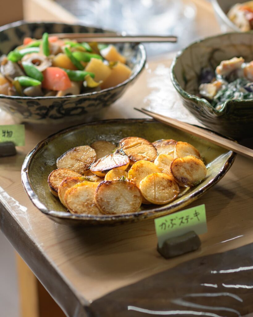 ごぼうのおこわ/しもつかれ/豆乳キムチ鍋/里芋のコロッケ/かぶステーキ/かぶスープ/ごまあえ/スイーツ ほか