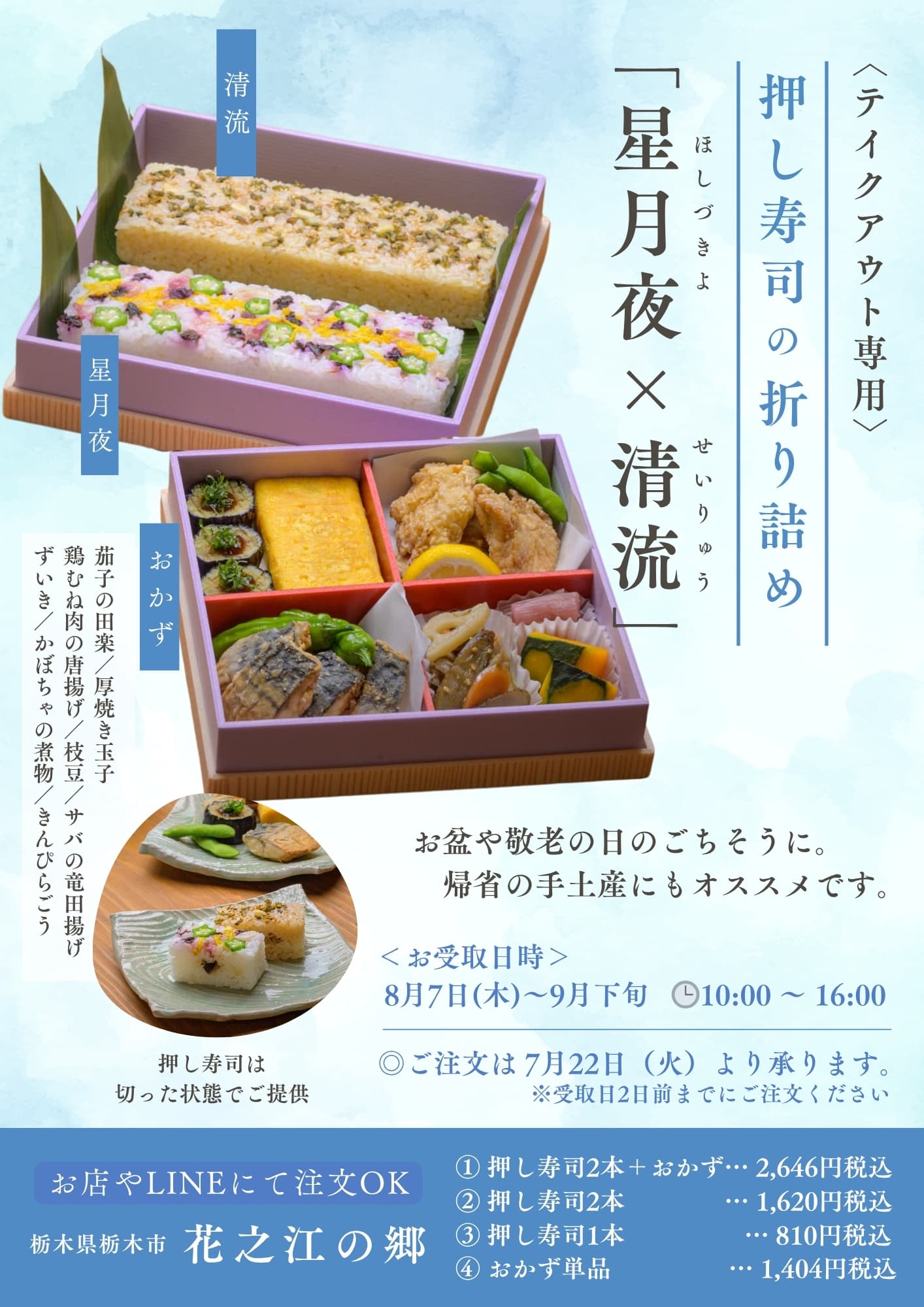 ※販売終了 【テイクアウト専用】 押し寿司の折り詰め「星月夜 × 清流」〈ご注文開始 7/22 火〜〉